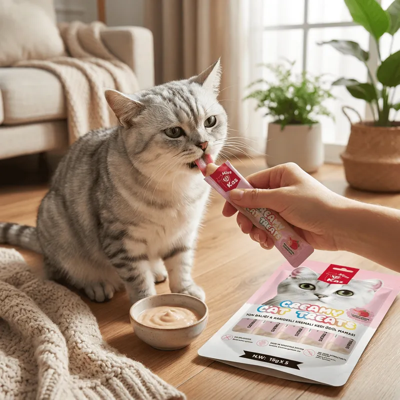 Kediniz için hem lezzetli hem de sağlıklı bir atıştırmalık arıyorsanız, Miss Kas Ton Balığı ve Karidesli Kremalı Kedi Ödül Maması tam da patili dostunuza göre! Kedilerin asla hayır diyemediği deniz ürünlerinin eşsiz uyumu, bu özel kremalı kedi ödülü paketinde bir araya geliyor. 15 gramlık 5 adet stick paketten oluşan bu ürün, taze ton balığı ve karidesin besleyici gücünü kedinizin mama kabına taşıyor.