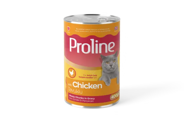 Proline Tavuklu Sos İçinde Et Parçacıklı Konserve Yetişkin Kedi Maması 400GR x 12 Adet